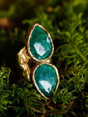 Очень нарядно смотрятся модели в оправе из желтого золота. Желтый красиво контрастирует с зеленым, подчеркивает глубину цвета. Такое колечко станет роскошным дополнением праздничного образа.