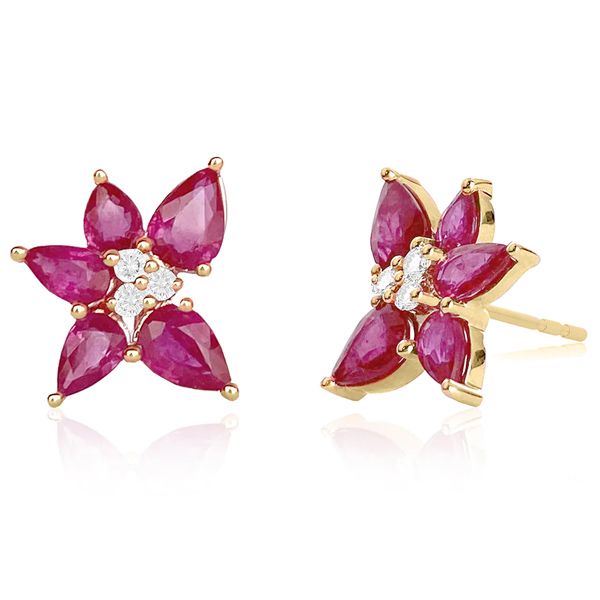 Серьги-гвоздики из 14-каратного желтого золота с рубинами и бриллиантами от EF Collection: