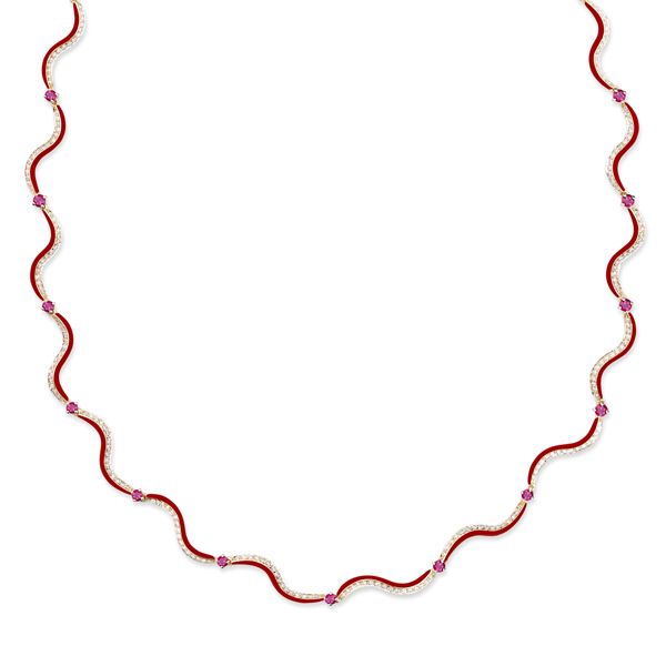 Колье Tidal Wave из 18-каратного желтого золота и эмали с розовыми сапфирами и бриллиантами от Ailes: