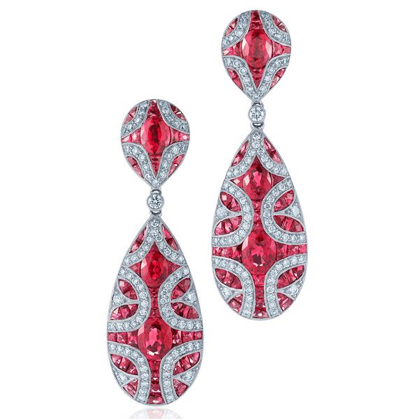 Серьги-капли из 18-каратного белого золота с рубинами и бриллиантами от Kwiat: