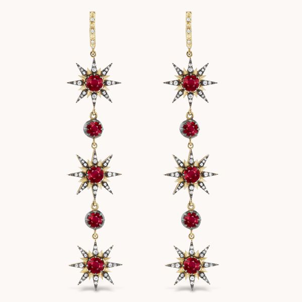 Серьги Stella из 14-каратного желтого золота с рубинами и бриллиантами от Marlo Laz: