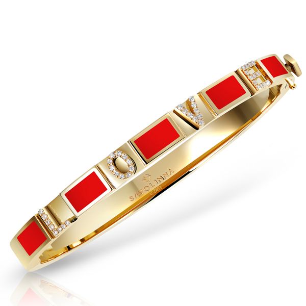 Браслет Love из желтого золота и эмали с бриллиантами от Savolinna: