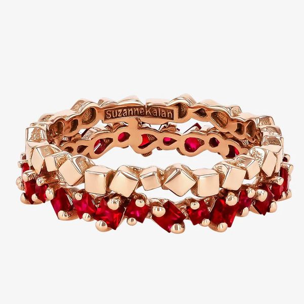 Кольцо вечности из 18-каратного розового золота с рубинами огранки принцесса весом 1,18 карата от Suzanne Kalan: