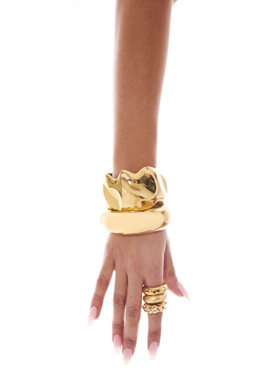 Самое яркое украшение Naked Wolfe — волнистые кованые золотые или серебряные манжеты Xena с PVD-покрытием. Они уже доступны на веб-сайте бренда по цене 200 евро.