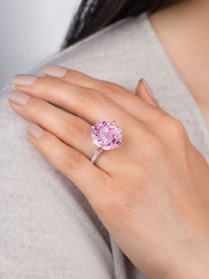 Кунцит привлекает своей нарядной цветовой гаммой: он бывает розовым, лиловым, сиреневым, фиолетовым. При этом оттенок может быть как более ярким и сочным, так и бледным. Такой нежный окрас сделал его востребованной вставкой в женских ювелирных изделиях.