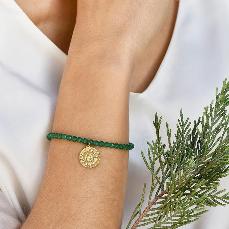 В этом браслете с гранеными бусинами из зеленого агата и золотой розеткой Blossom Rosette, вдохновленном древнегреческим мастерством, Lalaounis воплощает вневременной дизайн: