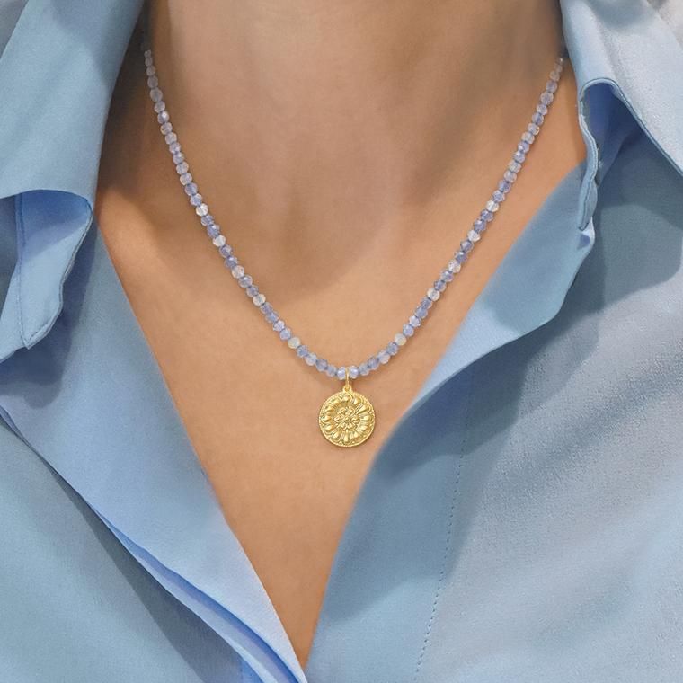 Lalaounis встречает наступающий 2025 год ожерельем с гранеными бусинами из иолита и золотым украшением Blossom rosette, вдохновленным древнегреческим искусством: