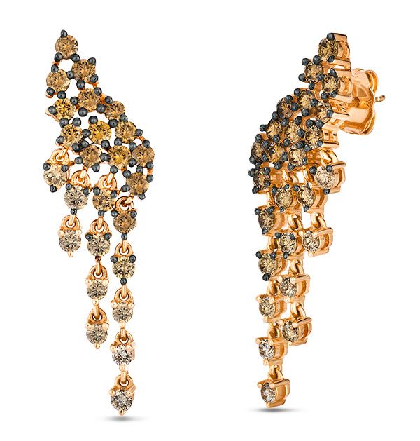 Серьги из коллекции Chocolate Ombré Pyramid с бриллиантами Chocolate Ombré общим весом 1,98 карата в 14-каратном золоте Strawberry Gold: