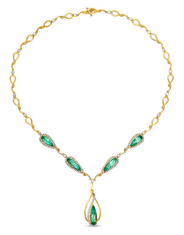 Колье Couture с неоново-зеленым турмалином грушевидной формы, весом 14,28 карата и бриллиантами Vanillaвесом 2,15 карата в 18-каратном золоте Honey: