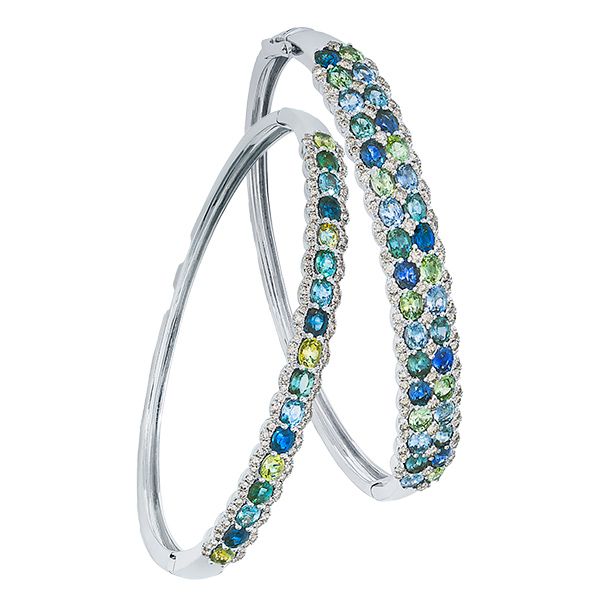 «Тенденция американа представлена нашей крупнейшей на сегодняшний день коллекцией Montana Sapphire Ombré. Мы разделили эти сапфиры на семь различных оттенков синего и зеленого, придав многим из них стандартную форму и создав из них дизайн омбре, демонстрирующий истинно американские инновации».