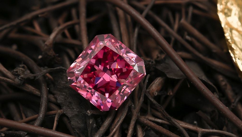 Бриллиант из Аргайла фантазийного яркого фиолетово-розового цвета, огранки радиант, весом 1,03 карата (Leibish):