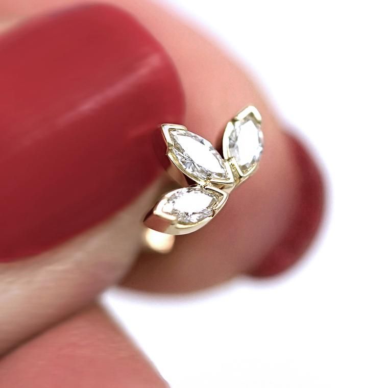 Вдохновленная природной симметрией, серьга из 18-каратного золота в виде лотоса украшена тремя бриллиантовыми лепестками. Подходит для пирсинга разных частей уха и придает изысканный архитектурный акцент любому стилю, она украшена цветочным узором ручной работы.
