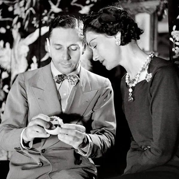 Герцог Фулько ди Вердура и Коко Шанель изучают дизайн ювелирных изделий в ее парижской квартире, 1930-е гг. – легендарное сотрудничество, которое помогло сформировать будущее современных ювелирных изделий (любезно предоставлено Verdura):