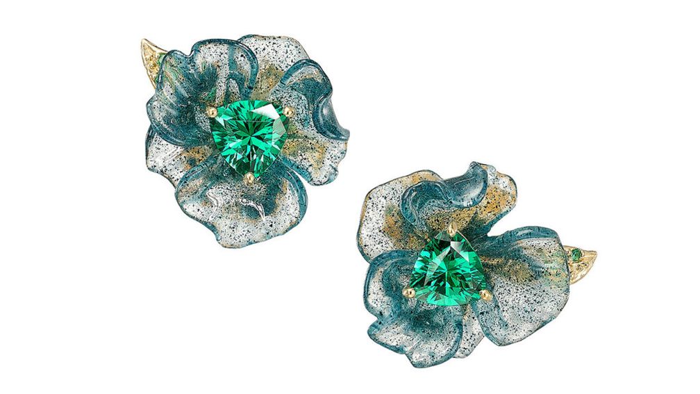 «Это торжество возможностей науки», — говорит дизайнер. Продолжая идею превращения отходов в украшения, Чан также разработала свою линию Regenerative-Gemstones, в которой она синтезирует такие камни, как аметист, янтарь и розовый кварц, из фрагментов гранильных обрезков, связывая их биосмолой. Чтобы воссоздать естественные несовершенства и включения янтаря, она использует осенние листья и веточки.