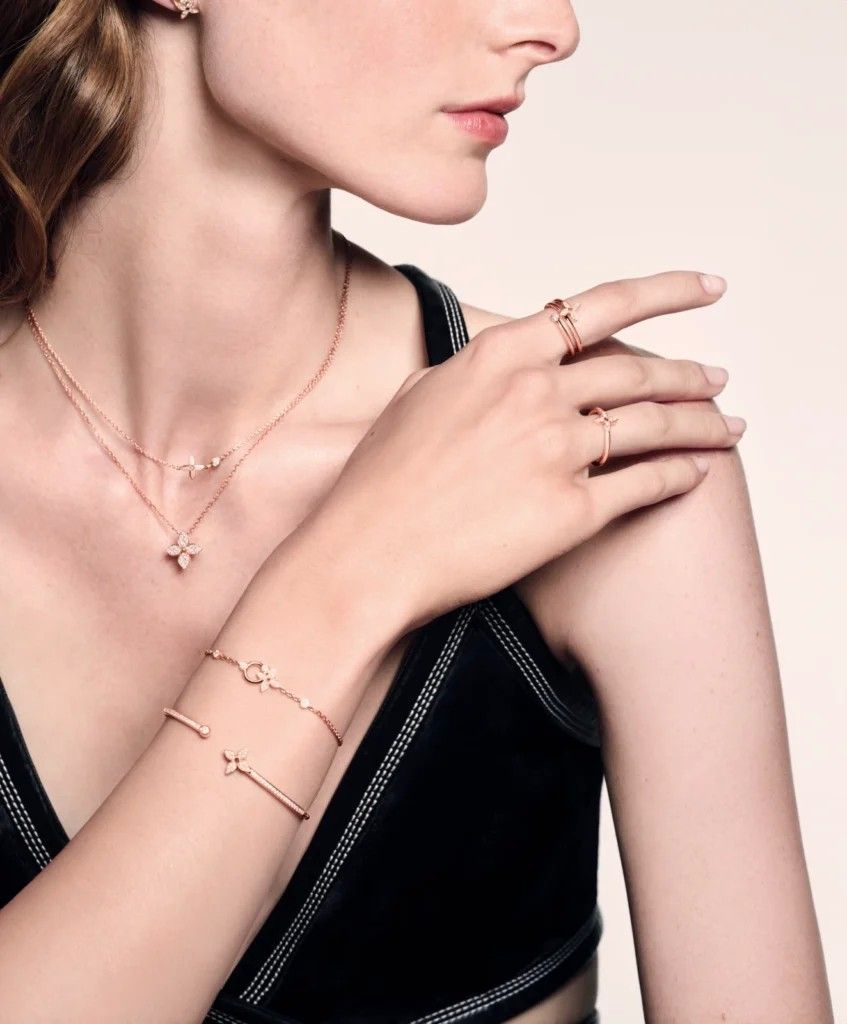 Каждое изделие, игривое и современное, предназначено для ношения по отдельности или в несколько слоев для создания универсального стиля. Оправа из розового золота придает изделиям сияние и современный оттенок классической элегантности. В этих новых творениях гармонично сочетаются богатое наследие Louis Vuitton и свежий стиль.