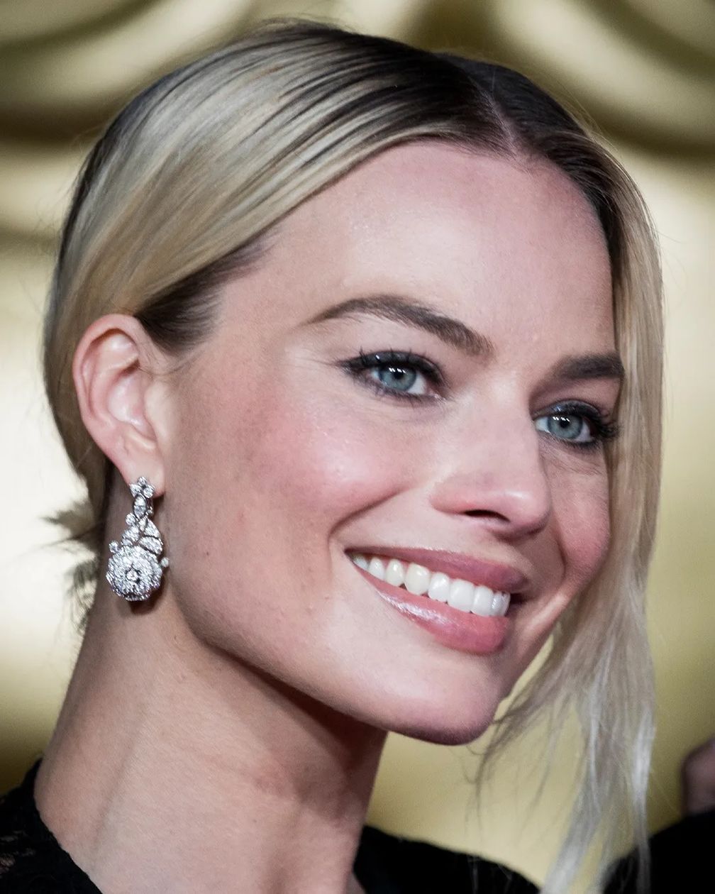 Робби привлекла к себе внимание в черном платье с блестками и перчатках в тон – точной копии наряда винтажной Барби 1960-х годов. Лучшей частью ее образа, несомненно, были колье с природными бриллиантами от Лоррейн Шварц и простые серьги-гвоздики.