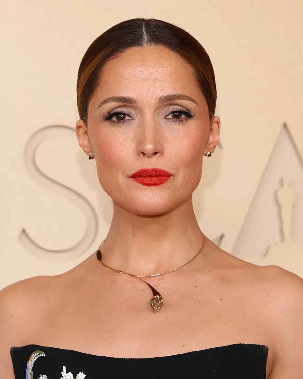 Роуз Бирн была великолепна на красной дорожке в единственном в своем роде бриллианте цвета шампань, грушевидной формы, украшавшем асимметричное колье-воротник с эмалью теплого коричневого цвета от Taffin by James De Givenchy.