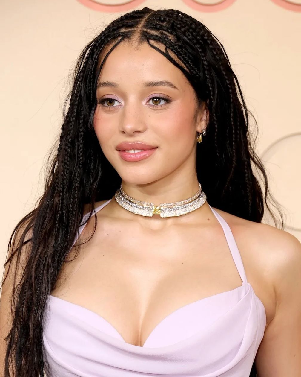 Чейз Инфинити выглядела потрясающе на красной дорожке в светло-лавандовом платье от Louis Vuitton, сшитом на заказ, в сочетании с бриллиантовым колье-чокером Summer из коллекции De Beers London Metamorphosis 2023 Couture Collection.