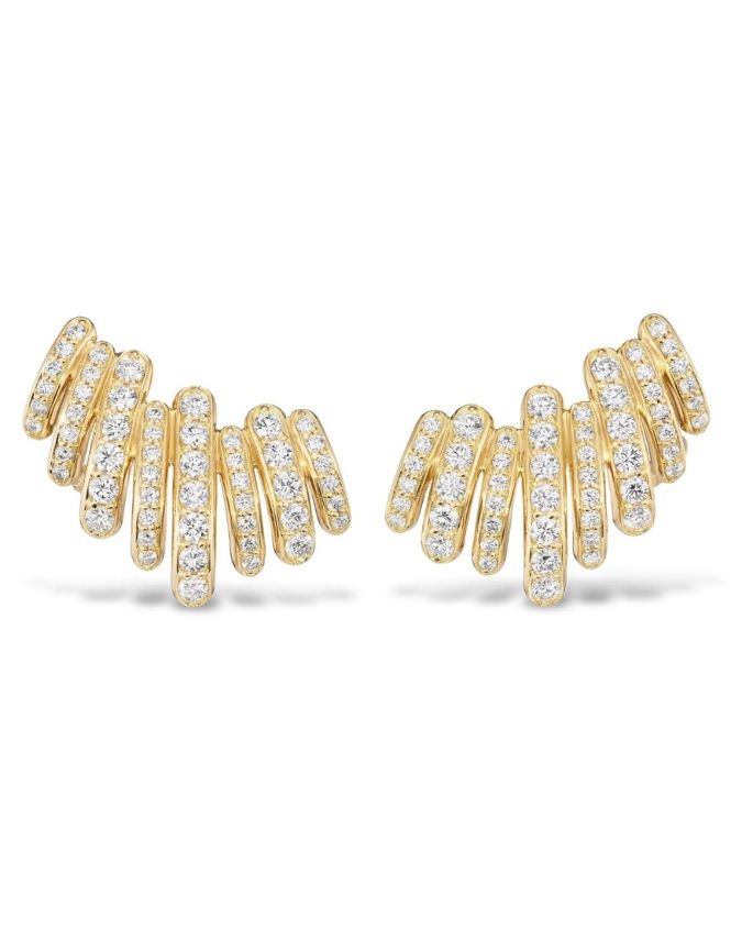 «Элегантный дизайн с изюминкой» – так описала свой стиль Гвинет Пэлтроу. Один из ее любимых способов разнообразить стиль – украсить серьги бриллиантами. На премьере фильма «Мстители: Финал» в Лос-Анджелесе она добавила остроты и блеска своему ансамблю от G. Label с помощью бриллиантовых клаймберов от Yvan Tufenkjian.