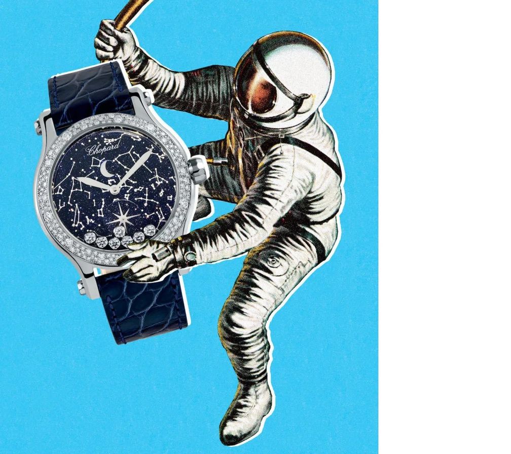 В честь 50-летия компании Cortina Watch швейцарская мануфактура создала две памятные модели, включая Happy Moon Auto 36mm Golden Jubilee Edition. Часы доступны в трех вариантах циферблата – из красного перламутра, зеленого авантюрина и синего авантюрина, как на фото, и все они оснащены ободками с бриллиантами и выполнены из этичного розового золота, желтого золота и белого золота соответственно.