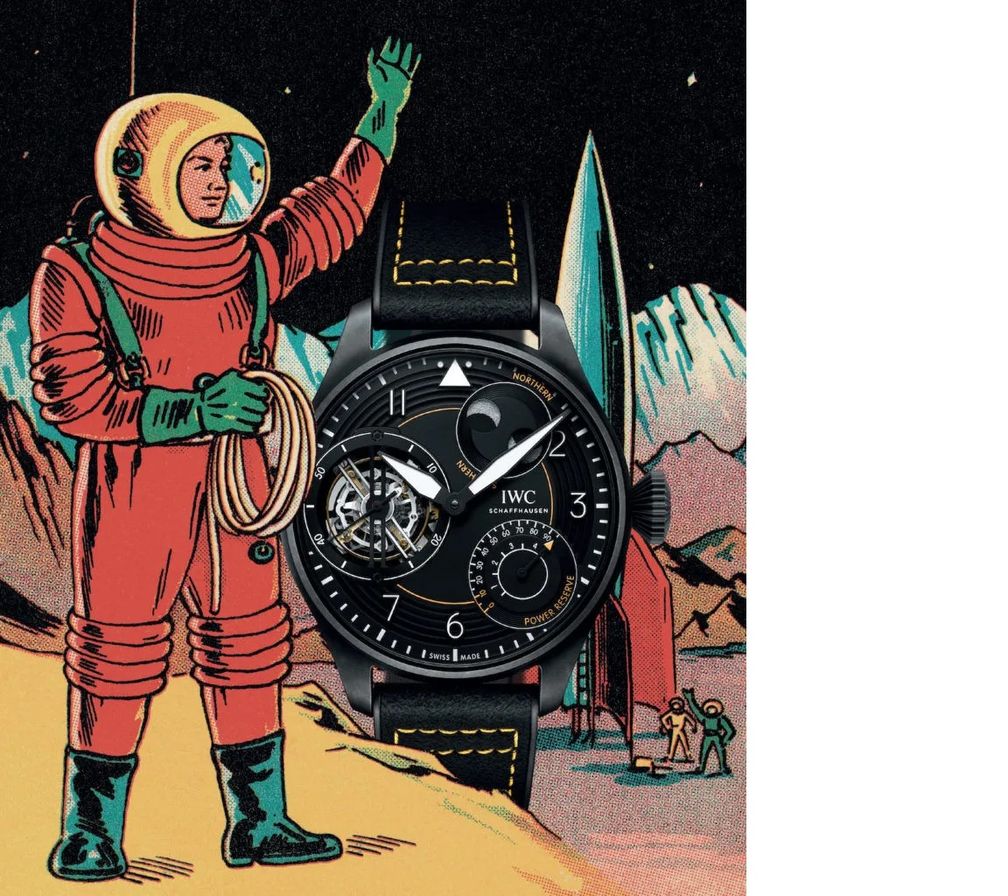 Большие пилотские часы Constant-Force Tourbillon Edition «IWC Racing» вдохновлены техническим миром автоспорта. Ограниченные всего 15 экземплярами, эти внушительные часы диаметром 46,2 мм сочетают в себе сложный турбийон постоянной силы IWC с матово-черным корпусом из кератаниума и полностью затемненным калибром 94800, которые придают модели уникальный футуристический вид.