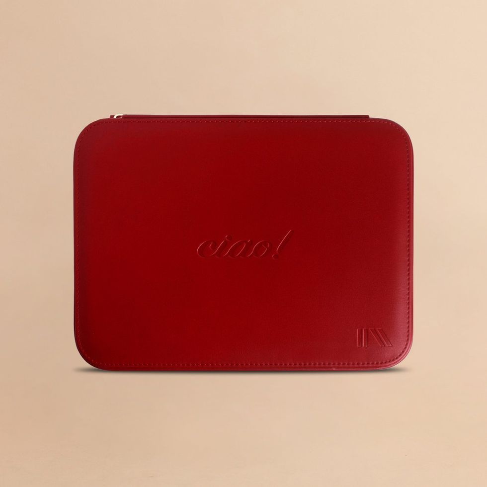 Скажите «Чао» запутанному узлу цепочек благодаря этому эргономичному рубиново-красному дорожному футляру. В него поместится множество сережек и колец, а для более дорогих украшений предусмотрены большие карманы на молнии.