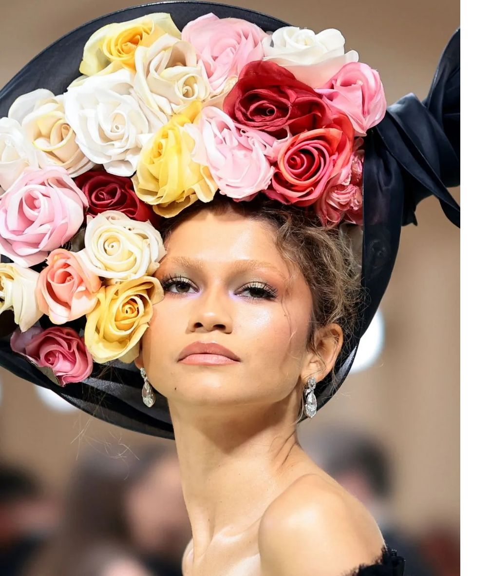 Зендея, сопредседатель Met Gala в этом году, появилась на красной дорожке в невероятном головном уборе с цветочным узором и великолепных серьгах с бриллиантами.