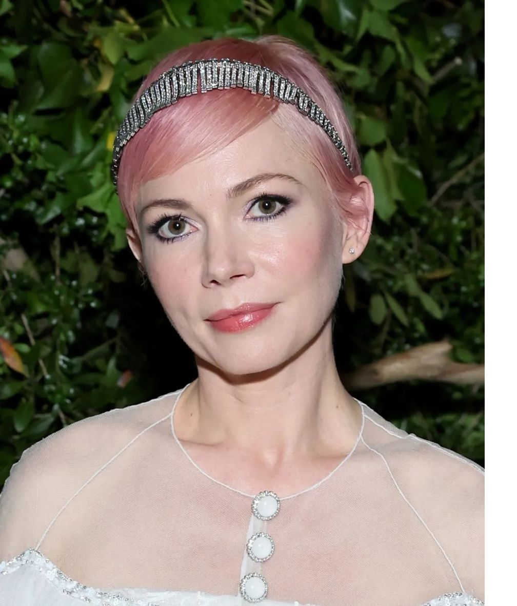 Мишель Уильямс возвращает бриллиантовую бахрому. Вместо колье актриса надела в волосы невероятное украшение от Chanel, чтобы придать прическе неожиданный, но очень крутой блеск.