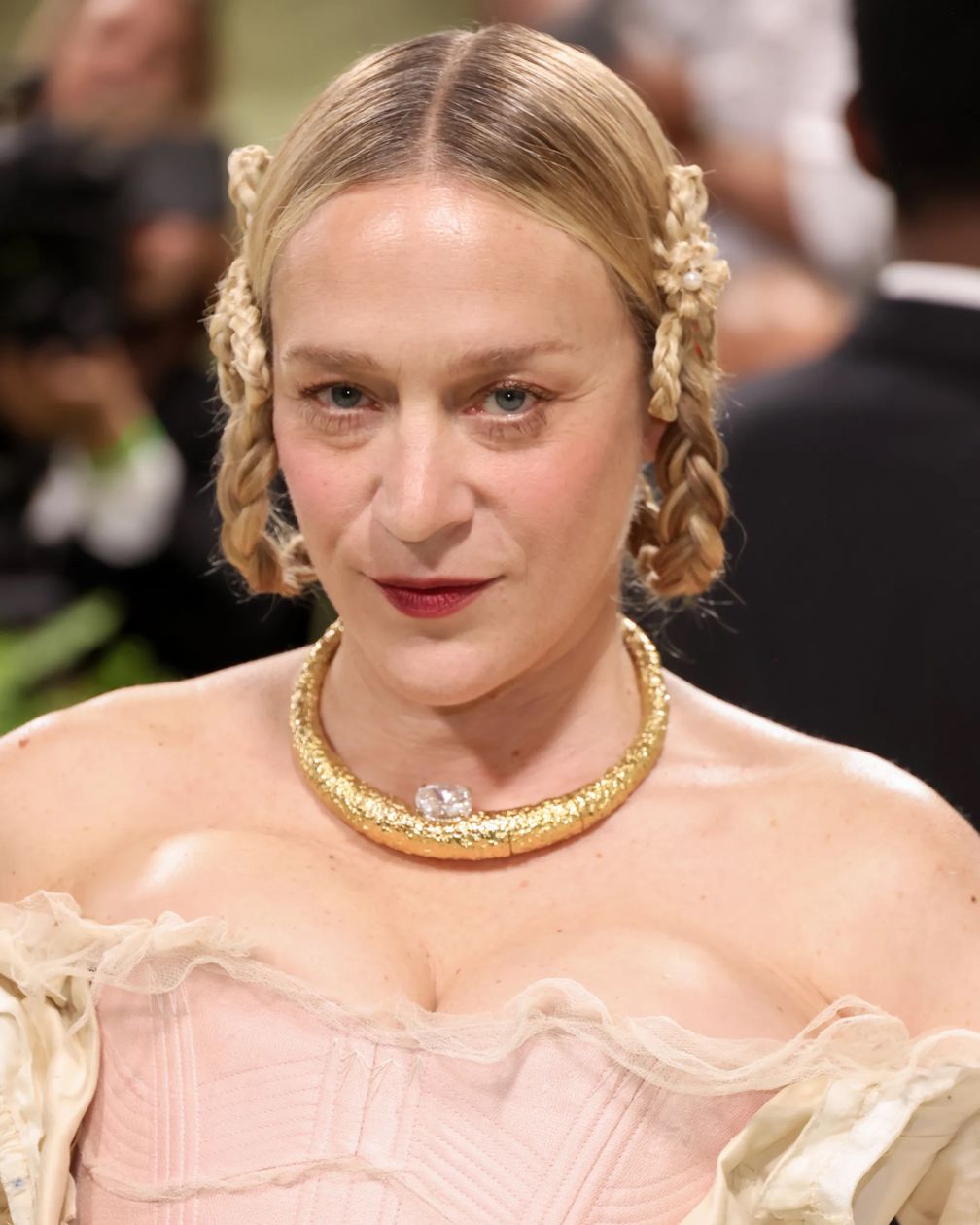 Хлоя Севиньи выглядела невероятно на красной дорожке Met Gala 2024 года, надев объемное украшение с природным бриллиантом от Ana Khouri.