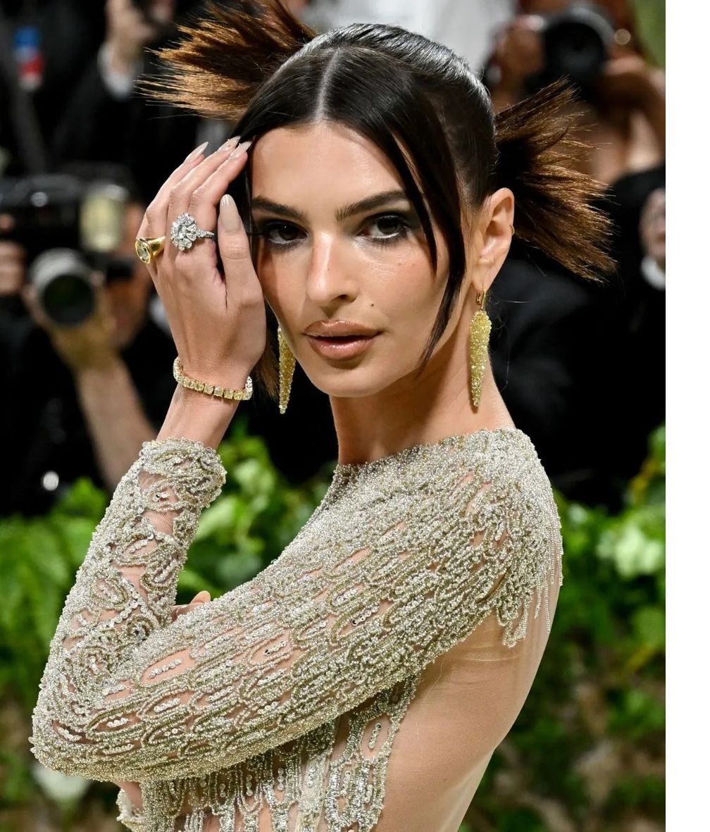 Эмили Ратаковски надела прекрасное винтажное платье Versace для Met Gala 2024 года, дополнив его серьгами с желтыми бриллиантами, теннисным браслетом с желтыми бриллиантами и двумя коктейльными кольцами с бриллиантами от Chopard.