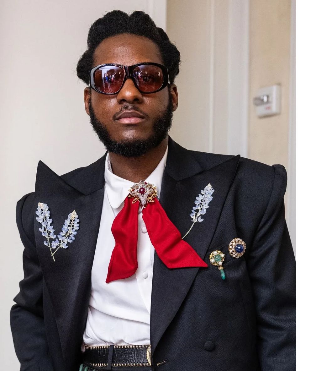 Леон Бриджес надел несколько винтажных брошей на Met Gala 2024 года. Он даже заменил галстук на брошь. В ассортименте были природные бриллианты, а также изумруды, рубины и сапфиры от Joesph Sadian and Sons.