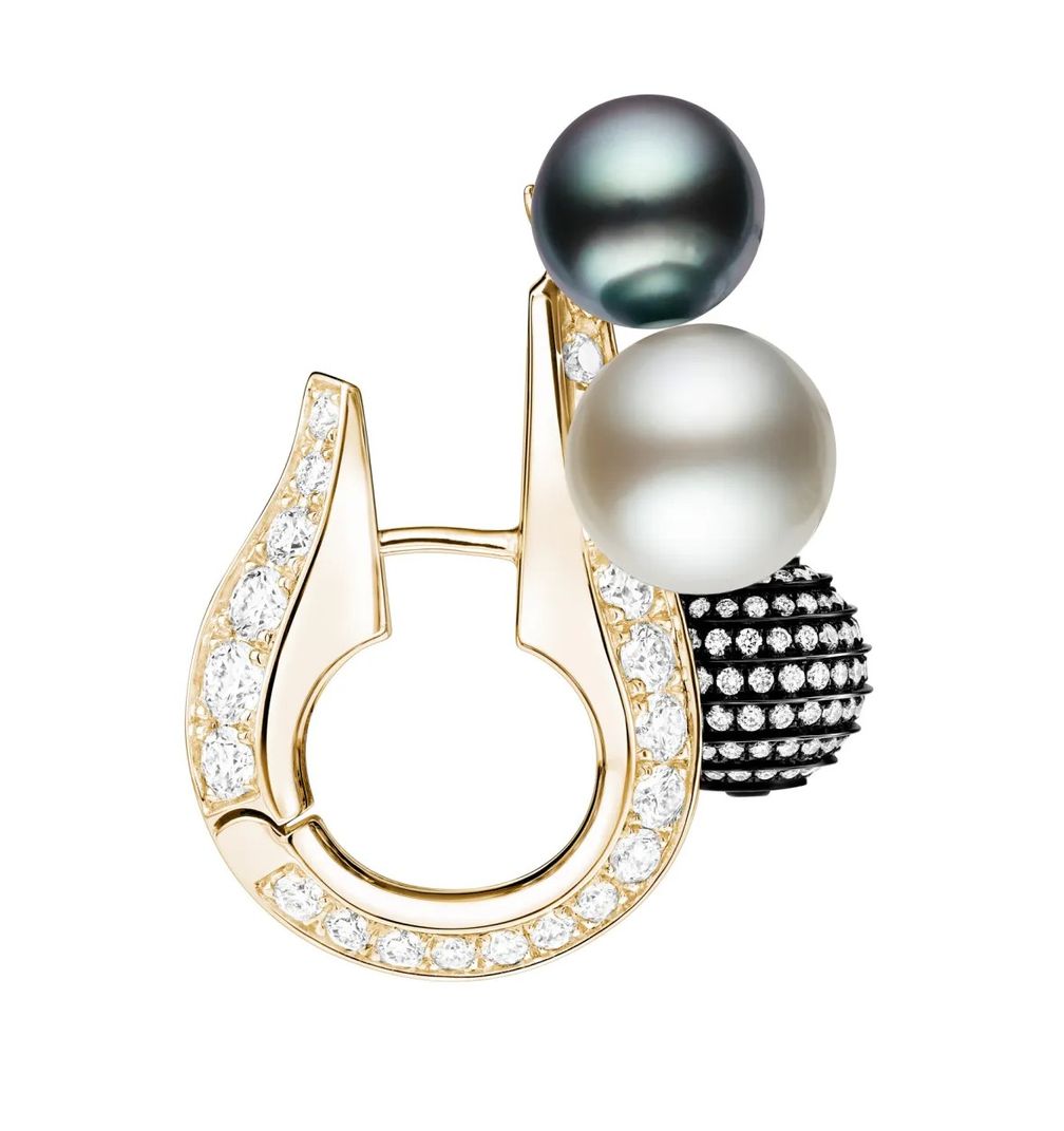 Одиночная серьга No 7 Sphere от Repossi из лимитированной коллекции, выполненная из золота цвета шампанского и черного золота с жемчугом и бриллиантами: