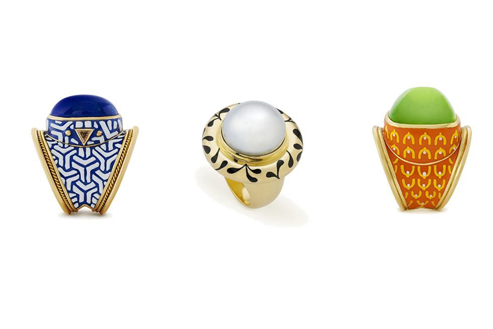 Созданные вручную в Великобритании опытными ювелирами, изделия Элизабет Гейдж известны своими драгоценными камнями и фантазийным использованием цвета. Дизайнер подходит к своей работе как художник, используя в качестве палитры золото, драгоценные камни и яркую эмаль.
