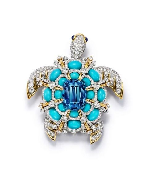 Красивые, единственные в своем роде броши можно найти во многих последних коллекциях высоких ювелирных изделий. В новой коллекции Tiffany Blue Book: Sea of Wonder есть очаровательная брошь в виде морской черепахи с бирюзой и мерцающим аквамарином.