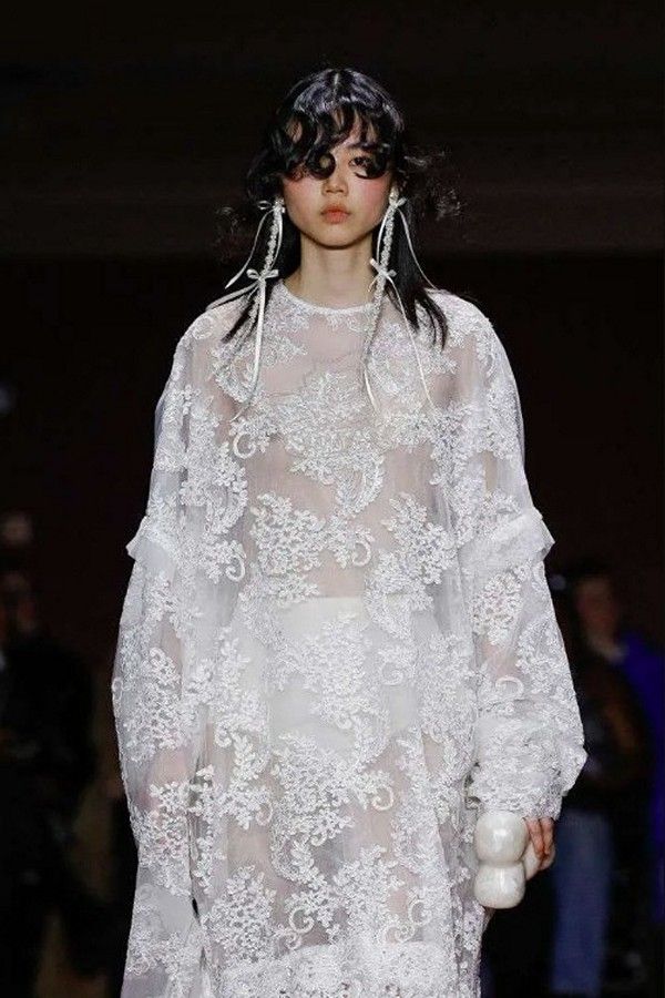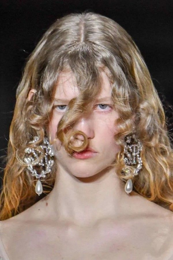 Будь то клатч, серьги-люстры, накидки или цепочки на поясах – жемчуг всех форм и размеров снова оказался неотразимым в Simone Rocha. Единственный другой аксессуар, удостоенный такой чести, – это атласные ленты.