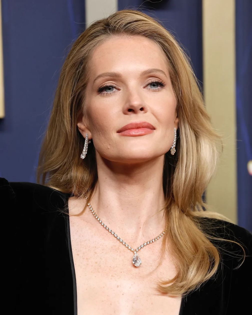 Меган Фэйхи была одета в черное бархатное платье от Valentino и украшения от Tiffany & Co. Звезда сериала «Сирены» надела колье с бриллиантом в форме груши, весом 11 карат и серьги с бриллиантами общим весом более 4 карат. Актриса дополнила свой образ кольцом Jean Schlumberger от Tiffany & Co.