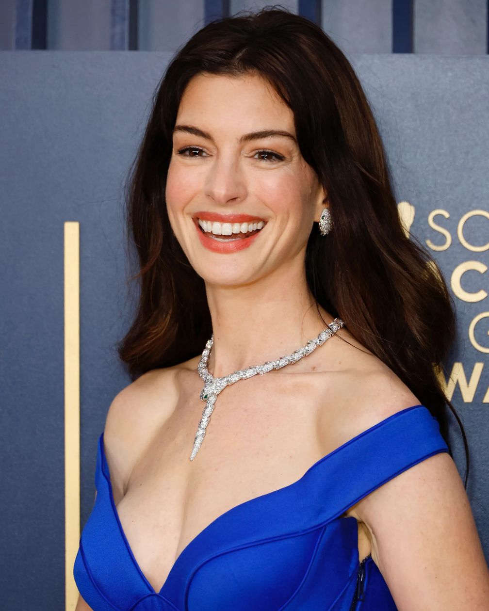 Энн Хэтэуэй выглядела блестяще на красной дорожке церемонии вручения премии Гильдии киноактеров, надев украшения от Bulgari High Jewelry, включая бриллиантовое колье Serpenti и соответствующие серьги-броши Serpenti. В знак уважения к фильму 2006 года «Дьявол носит Prada» Хэтэуэй надела платье Atelier Versace, которое было «не просто голубым, не лазурным, не бирюзовым, а небесно-голубым».