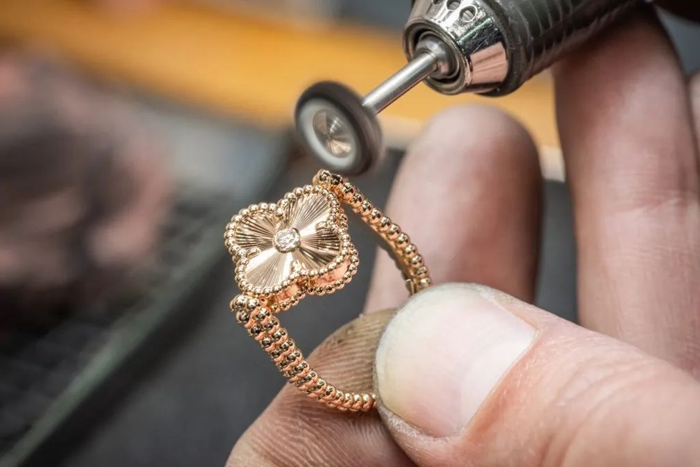 Этапы огранки и полировки каждого узора требуют особой тщательности, чтобы каждый камень идеально вписался в золотую оправу. Гильоширование выполняется вручную, что требует значительного мастерства для создания четких линий, которые улавливают свет, не перегружая камень.