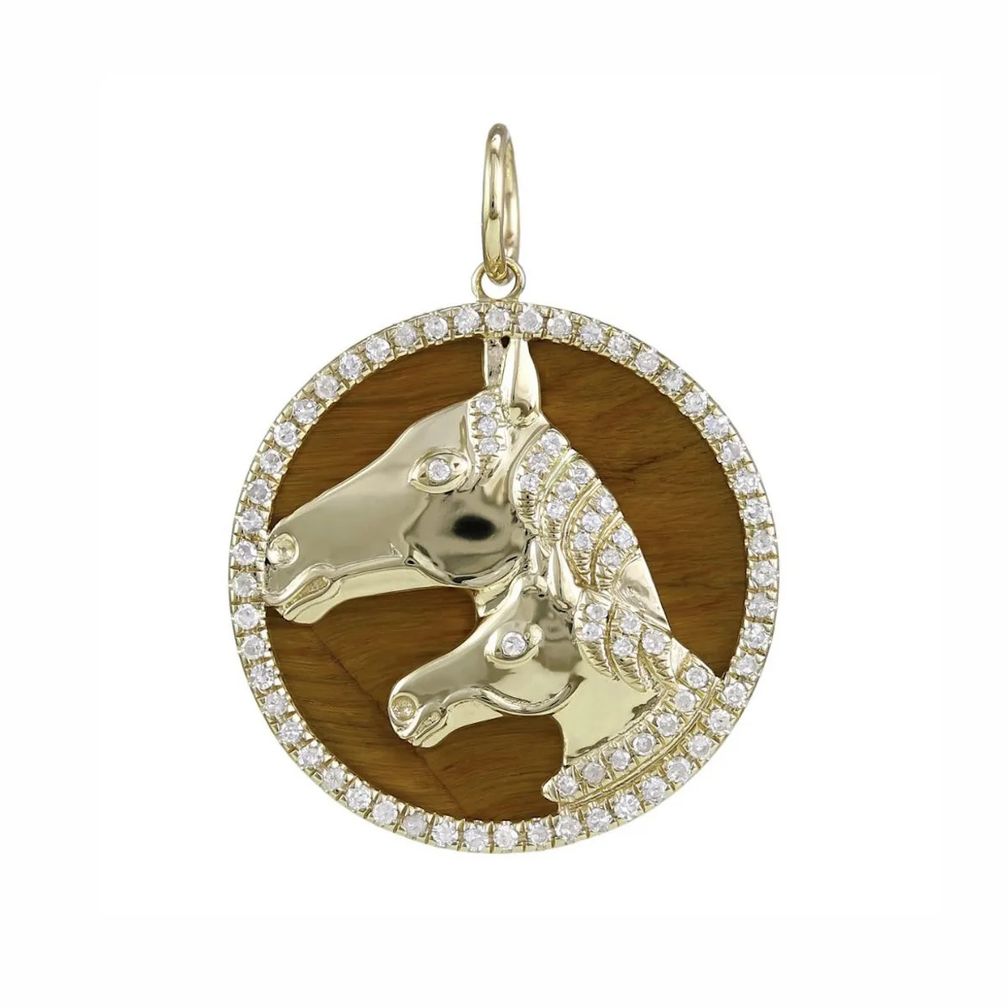 На украшенной бриллиантами подвеске с тигровым глазом от Lionheart изображены лошадь и жеребенок. Эту милую подвеску можно добавить к цепочке любого стиля, а если вы чувствуете себя немного непокорной, можно добавить ее к бриллиантовому теннисному ожерелью.