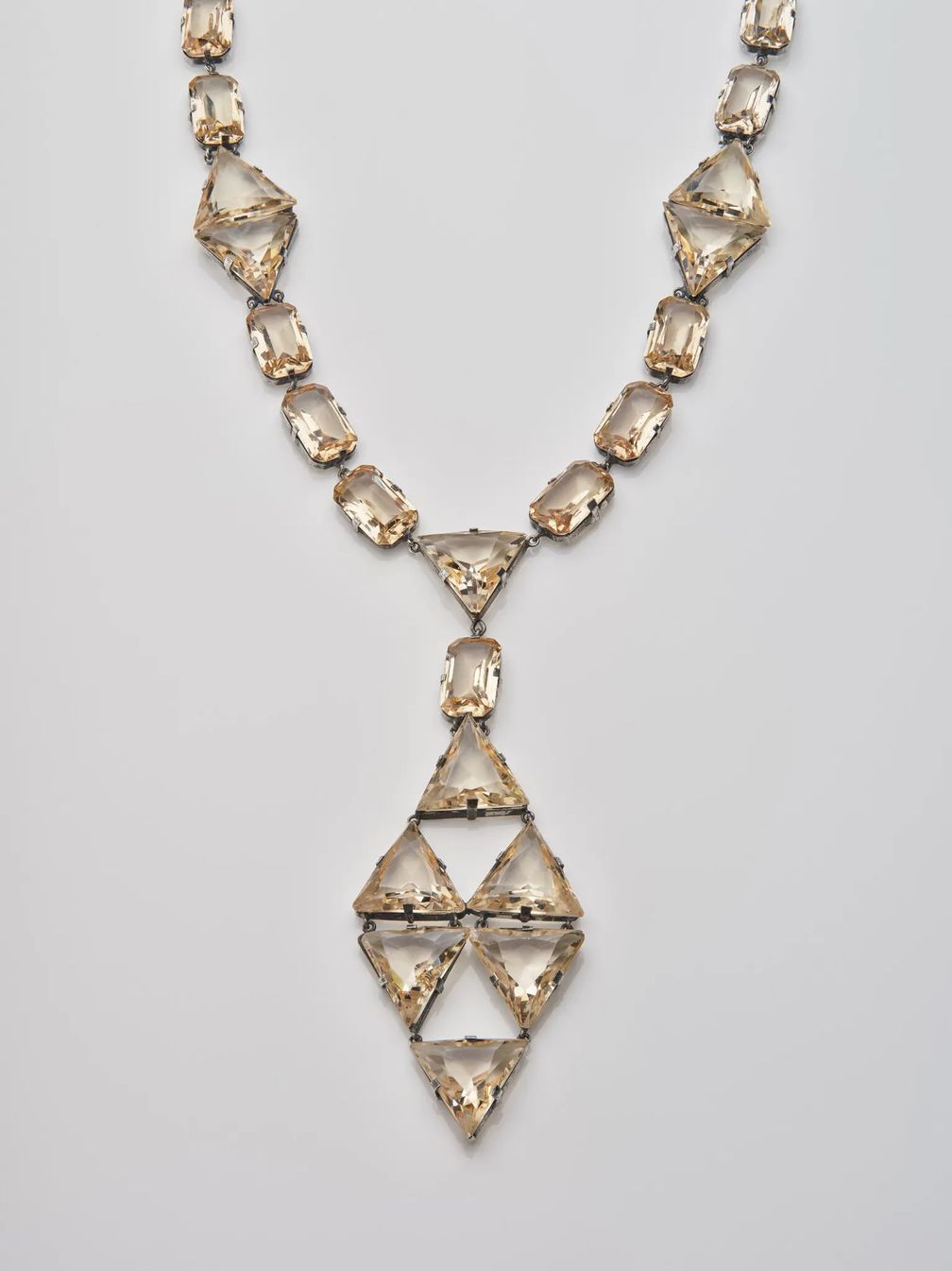 Длинное ожерелье, или сотуар, из чистого серебра и бледно-желтого горного хрусталя, изготовленное Домом Lukès для Chanel в 1920-х годах (National Museums Scotland):