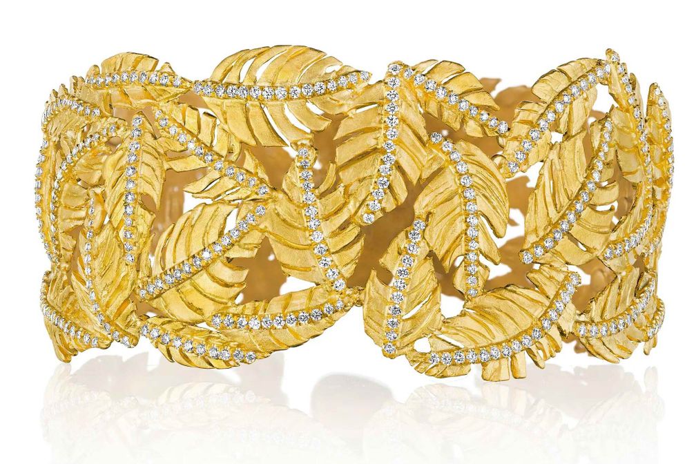 Манжета из 22-каратного золота с мотивом листьев от Сьюзан Гордон, нью-йоркского скульптора и ювелирного дизайнера: