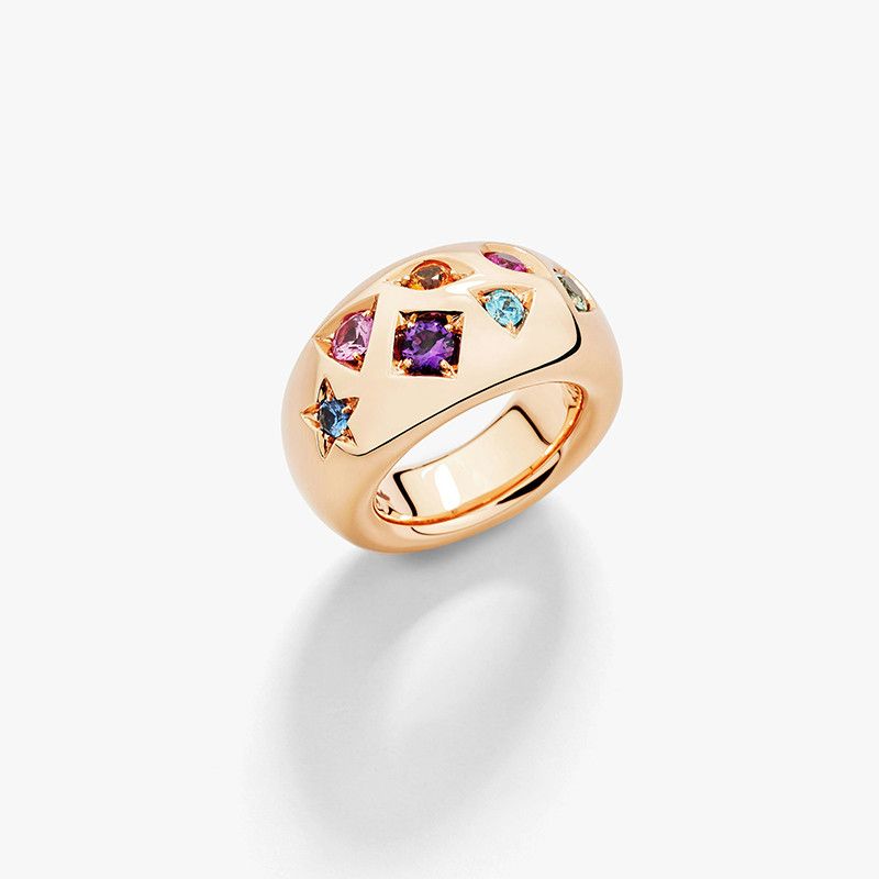 Кольцо Iconica из розового золота с зелеными, розовыми, оранжевыми и синими сапфирами, рубинами, аметистами и цирконами:
