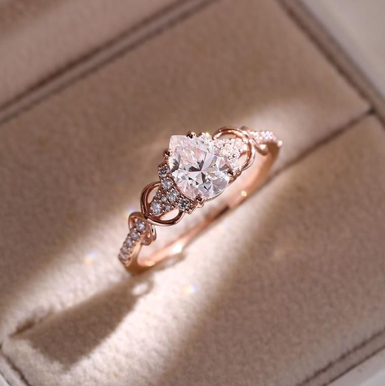 Муассанит грушевидной огранки – драгоценный камень, созданный в лаборатории и известный своим бриллиантовым блеском, – оправлен в кольцо из 14-каратного золота. От MollyJewelryUS:
