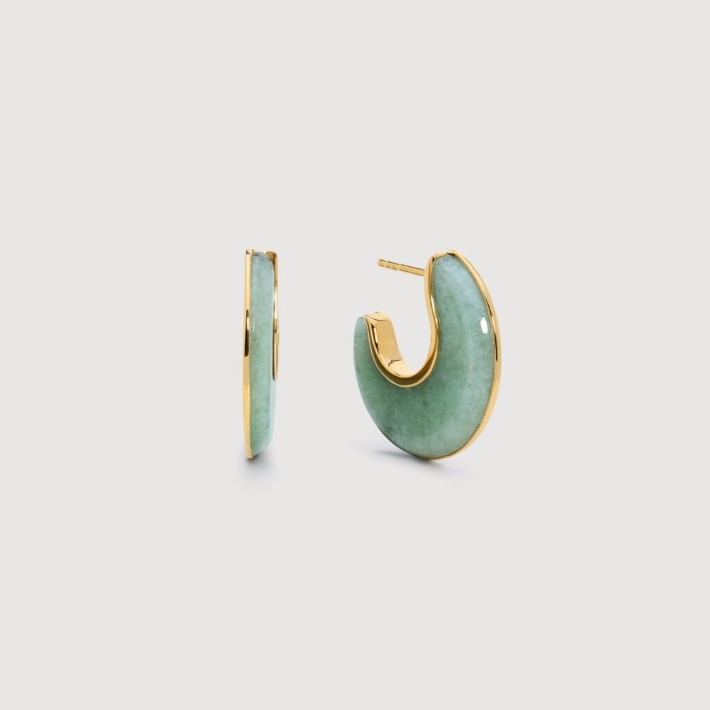 Коллекция из девяти украшений, на 100 % изготовленных из переработанного 18-каратного золота, включает в себя тигровый глаз и зеленый авантюрин.