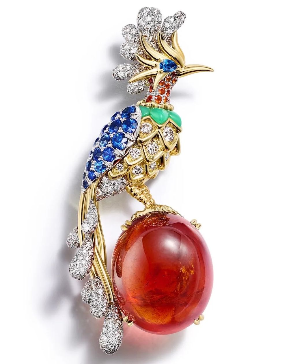 Брошь Paradise Bird из спессартина от Tiffany & Co. Коллекция Blue Book 2026: Hidden Garden (любезно предоставлено Tiffany & Co.):