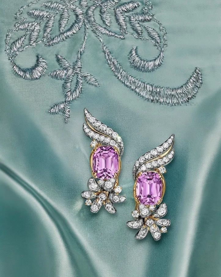 Серьги с кунцитами огранки кушон и природными бриллиантами от Tiffany & Co. Коллекция Blue Book 2026: Hidden Garden (любезно предоставлено Tiffany & Co.):
