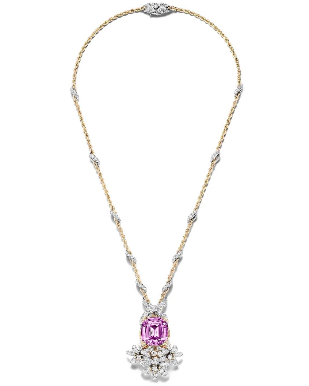 Подвеска Jasmine с кунцитом огранки кушон, весом 25,08 карата и природными бриллиантами от Tiffany & Co. Коллекция Blue Book 2026: Hidden Garden (любезно предоставлено Tiffany & Co.):