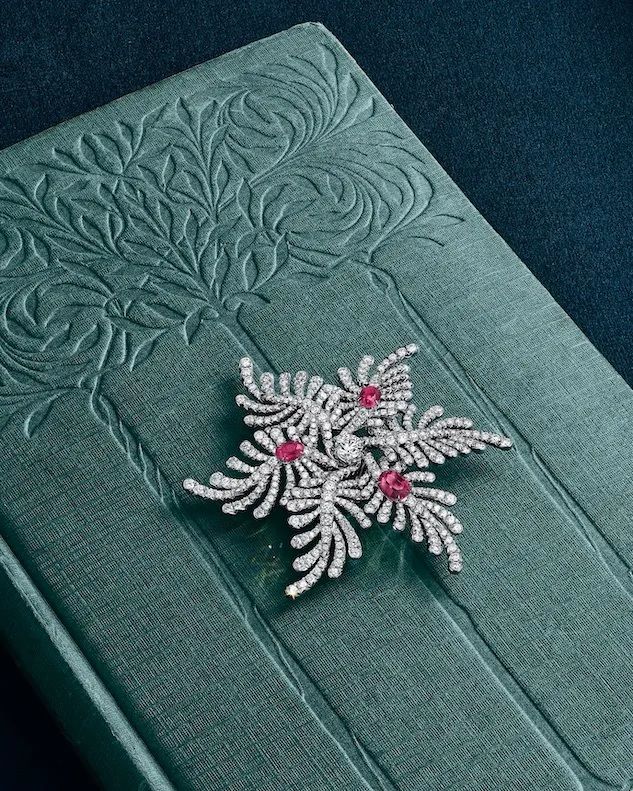 Брошь Palm с рубином и природными бриллиантами от Tiffany & Co. Коллекция Blue Book 2026: Hidden Garden (любезно предоставлено Tiffany & Co.):