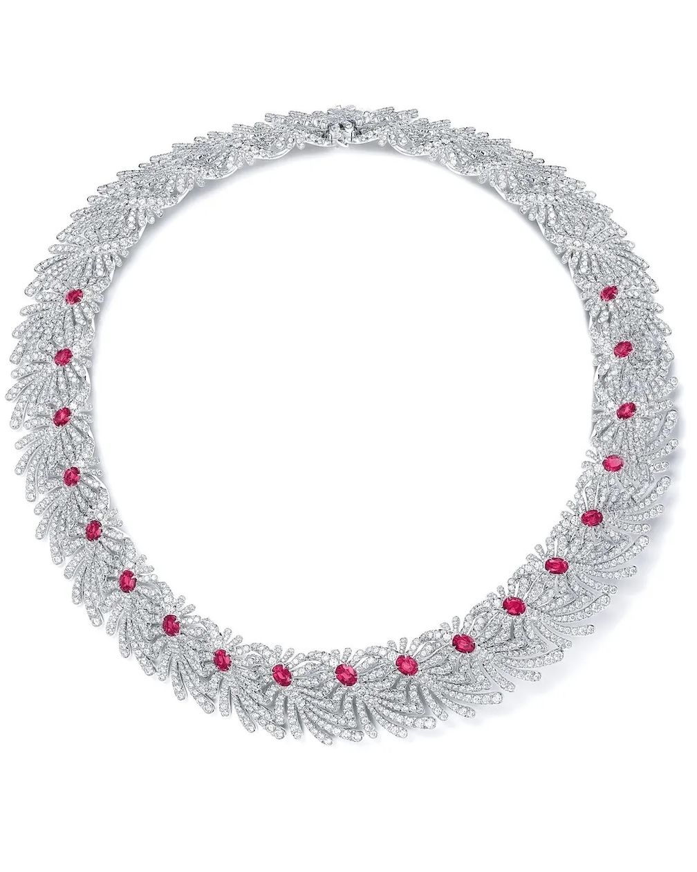 Ожерелье Palm с рубинами и природными бриллиантами от Tiffany & Co. Коллекция Blue Book 2026: Hidden Garden (любезно предоставлено Tiffany & Co.):