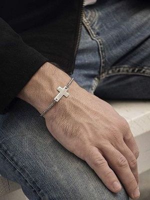 Мужские браслеты с крестом выпускают в разных вариациях, например: